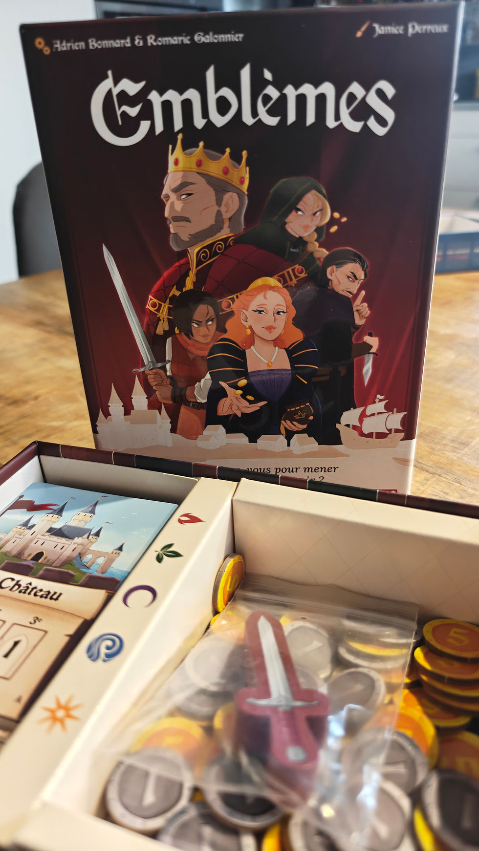 Il y a des jeux qui s’installent tout doucement, sans bruit, et qui finissent pourtant par déclencher de grands émois autour de la table. "Emblèmes" de Savana fait clairement partie de ceux-là. Une petite boîte qui ne paye pas de mine, un univers médiéval où le roi vient de rendre l’âme sans héritier… et voilà que les familles les plus influentes du royaume aiguisent leurs ambitions. Intrigues, manigances, coups de bluff, petites trahisons et victoires arrachées au dernier moment : dans "Emblèmes", le pouvoir ne se gagne jamais par hasard, mais rarement sans un peu de fourberie.